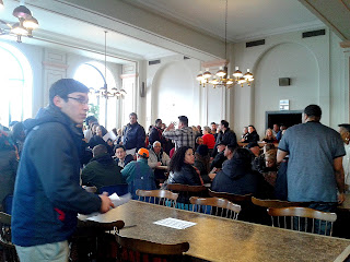 … In the hallway, they talked about how COLD it had been waiting in line